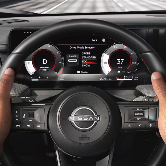 Dial in your performance settings as you go. Kicks offers four different Drive Modes — Standard, Eco, Sport and an available Snow Mode on AWD models. Select each one at the simple flip of a switch.