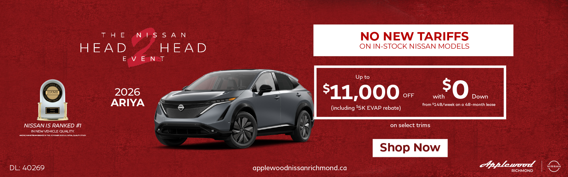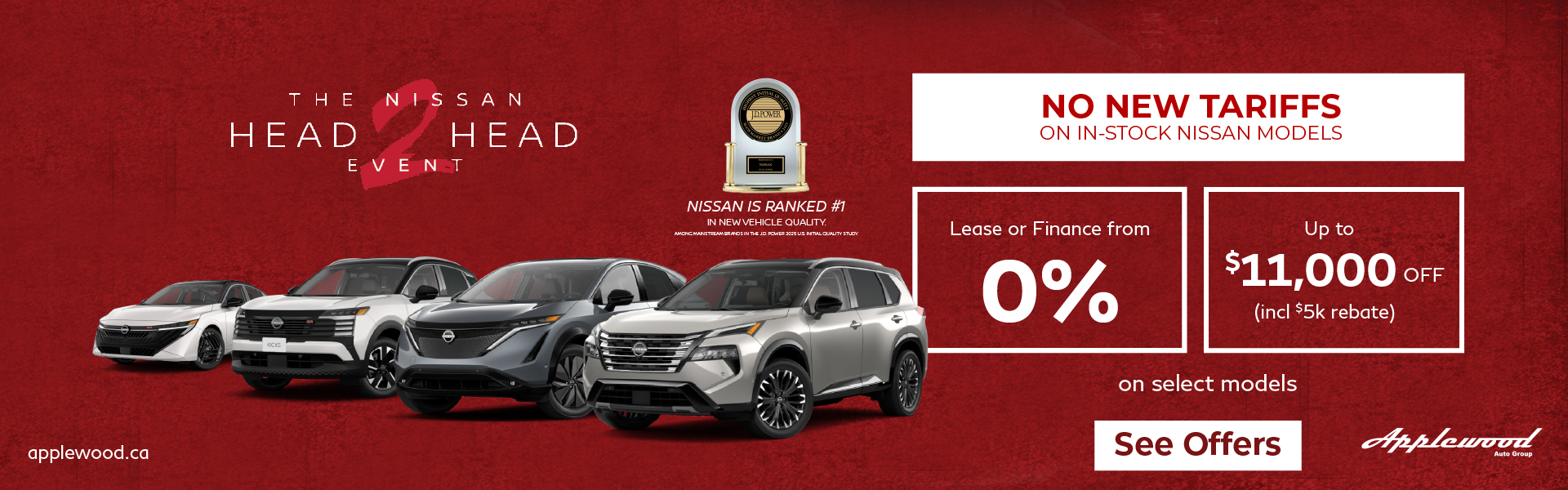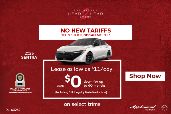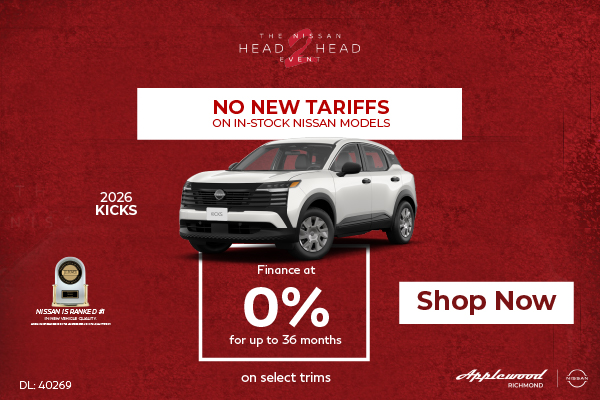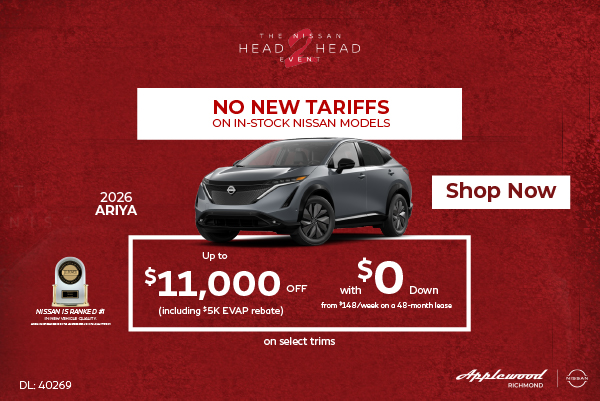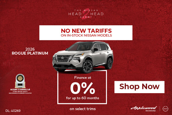 Disclaimer: Finance and Lease offers on approved credit. Regional offers, lease and finance conditions apply. See your local Nissan dealer for more information. Use of any calculation and/or tools on https://www.applewoodnissanrichmond.ca does not constitute an offer of direct financing or any particular lease, finance, purchase option or transaction. Calculation and tools are intended for illustrative purposes only. Rates and requirements may vary depending on credit worthiness. Every effort is made to ensure the accuracy of the content on the pages on https://www.applewoodnissanrichmond.ca. In the event of a discrepancy, error or omission, vehicle prices, offers and features as established by Nissan Canada and participating Nissan dealers in Canada, will prevail.